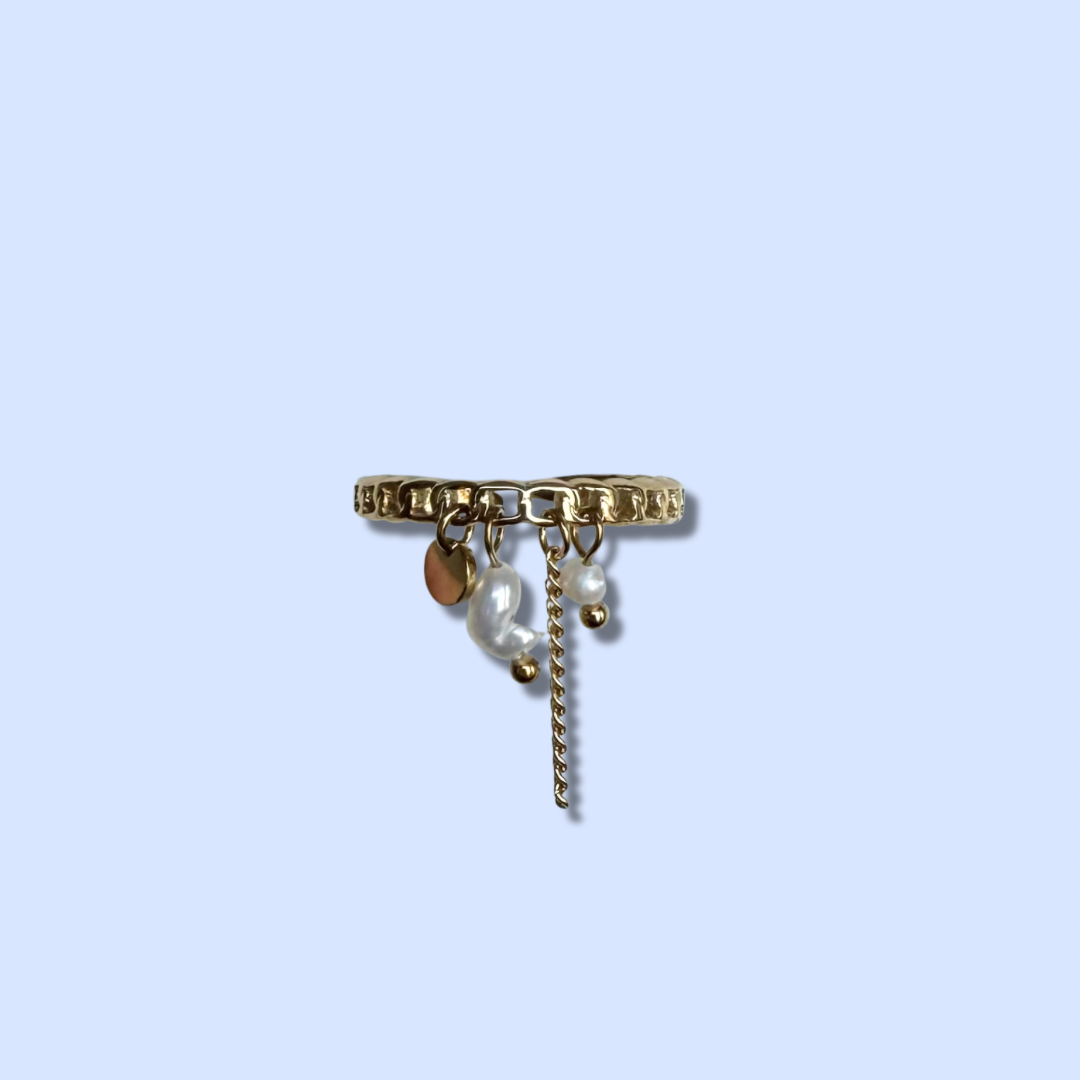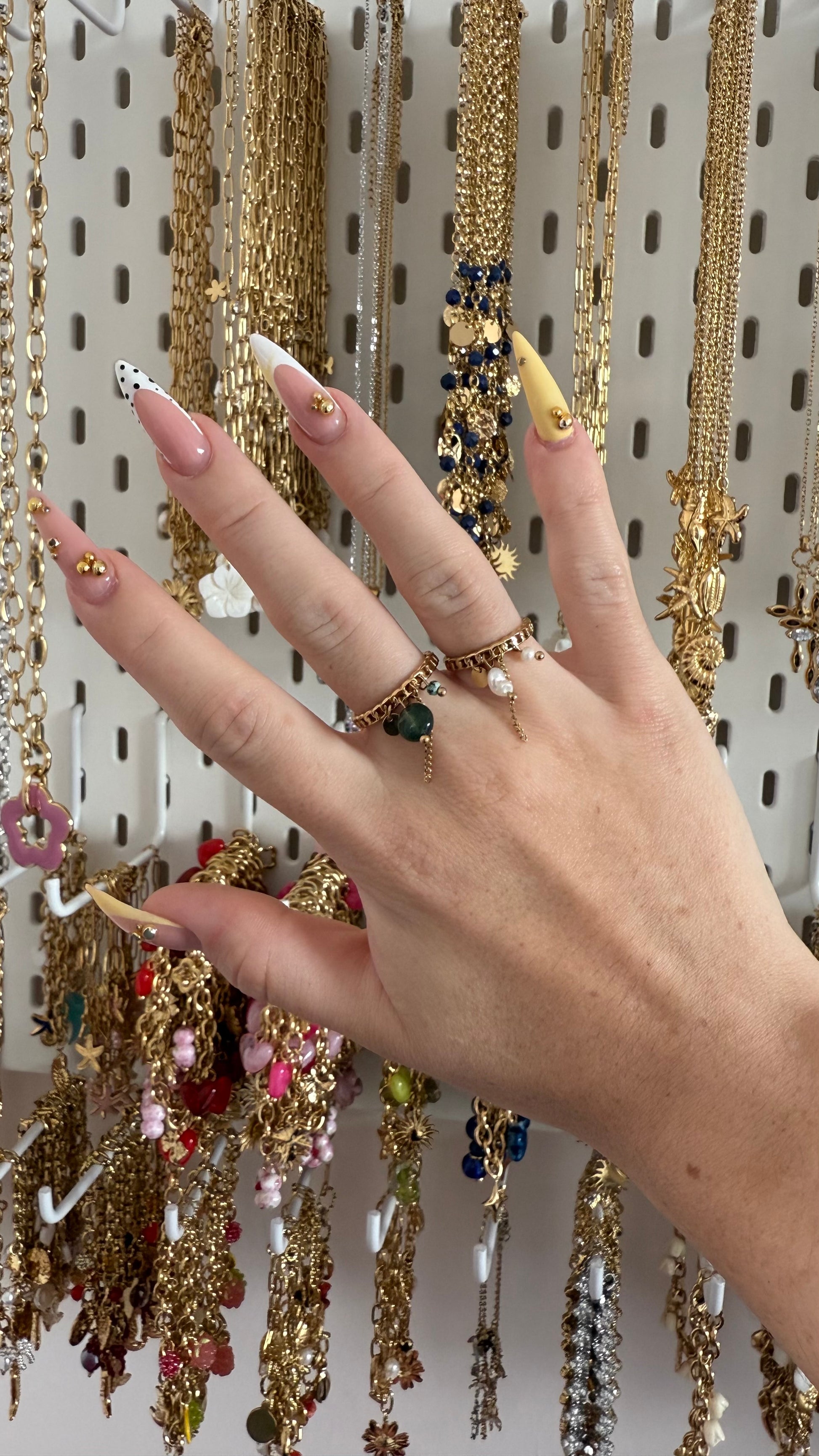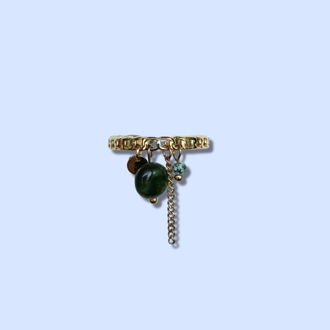 - Bague en acier inoxydable ornée de pierres naturelles (jaspe verte / perles d’eau douce)