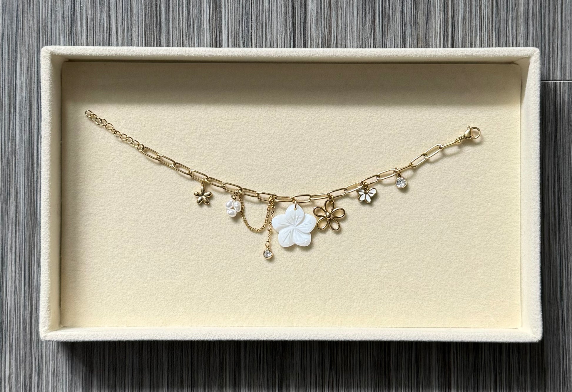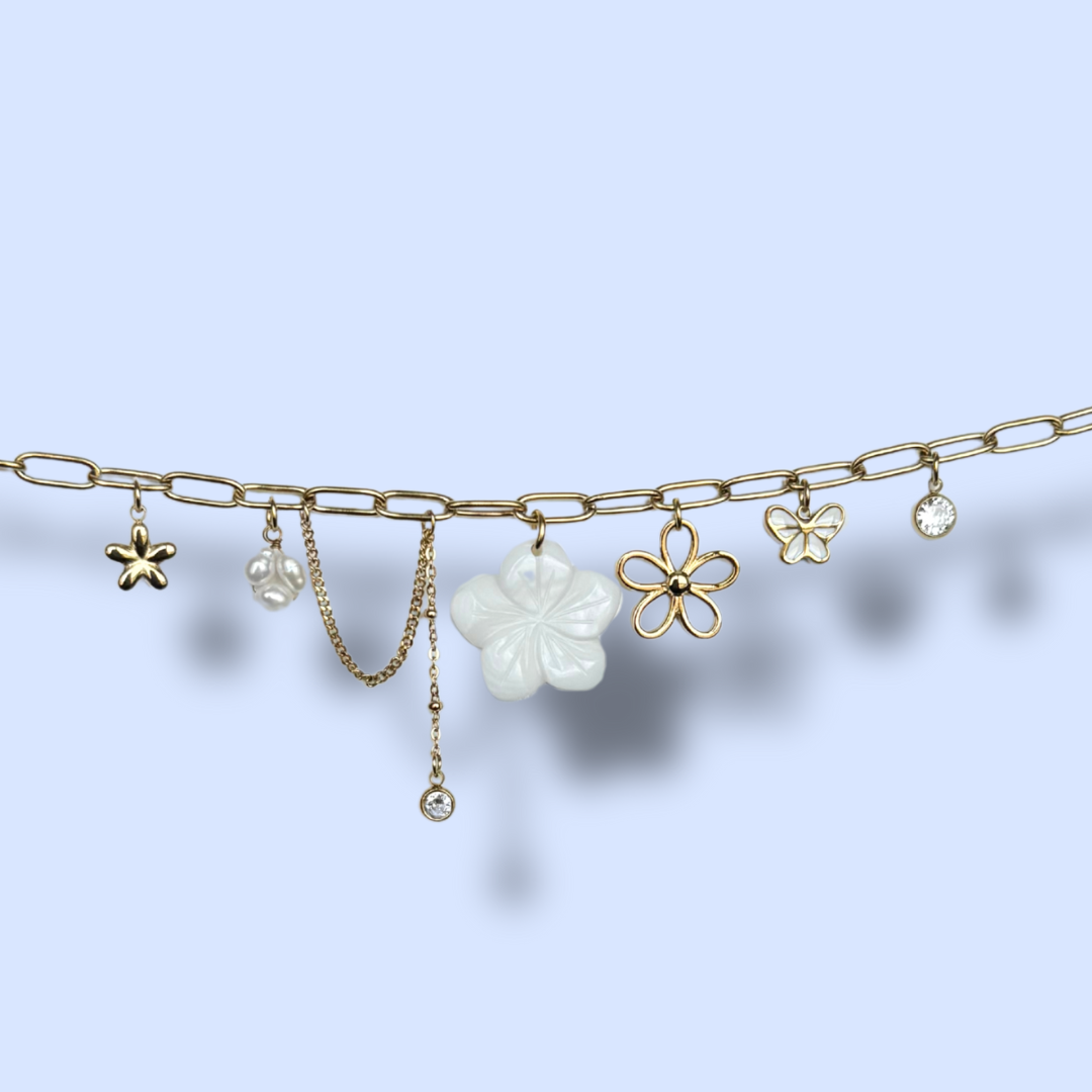 - Bracelet en acier inoxydable (perles d'eau douce, fleur nacrée)