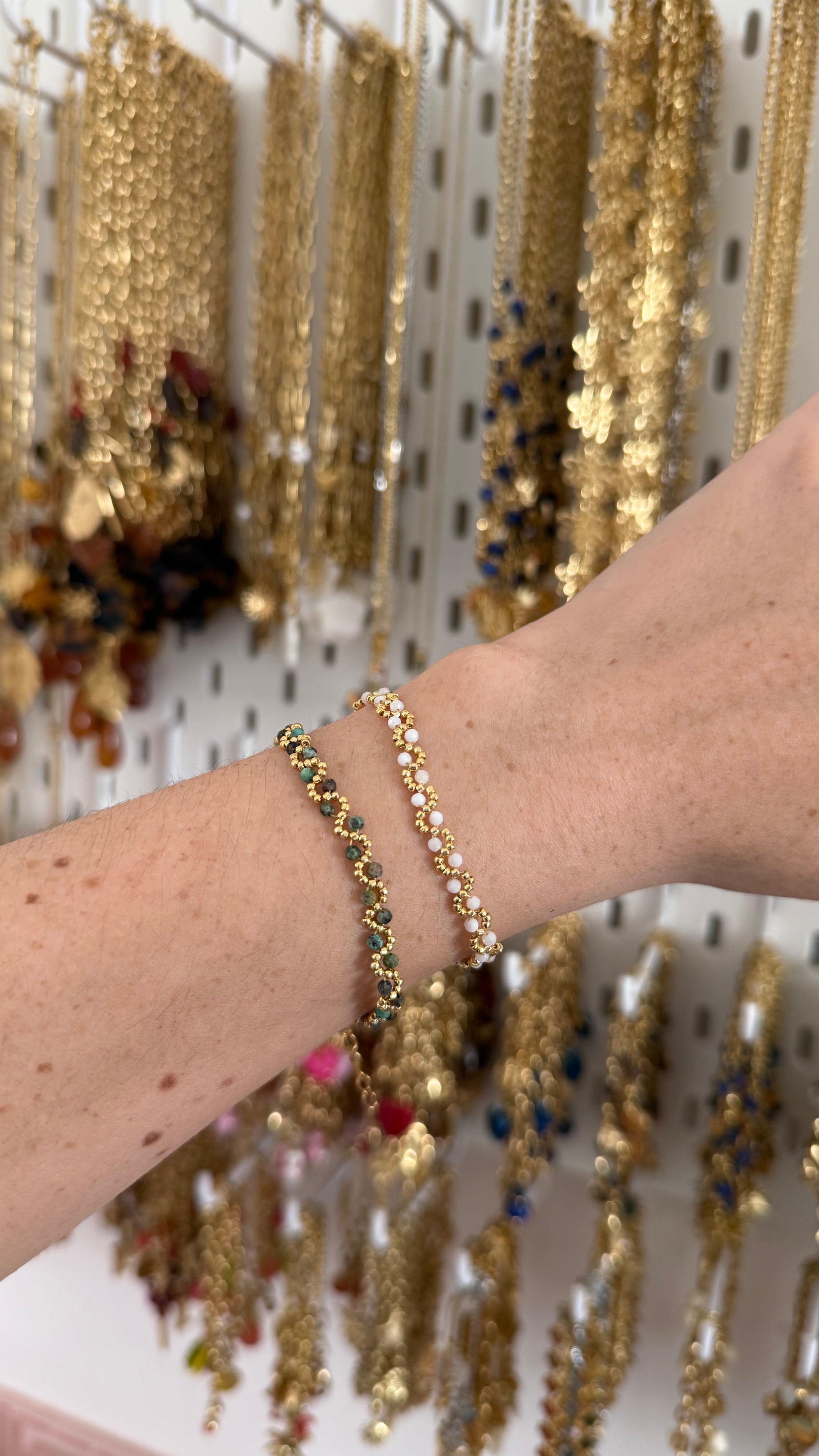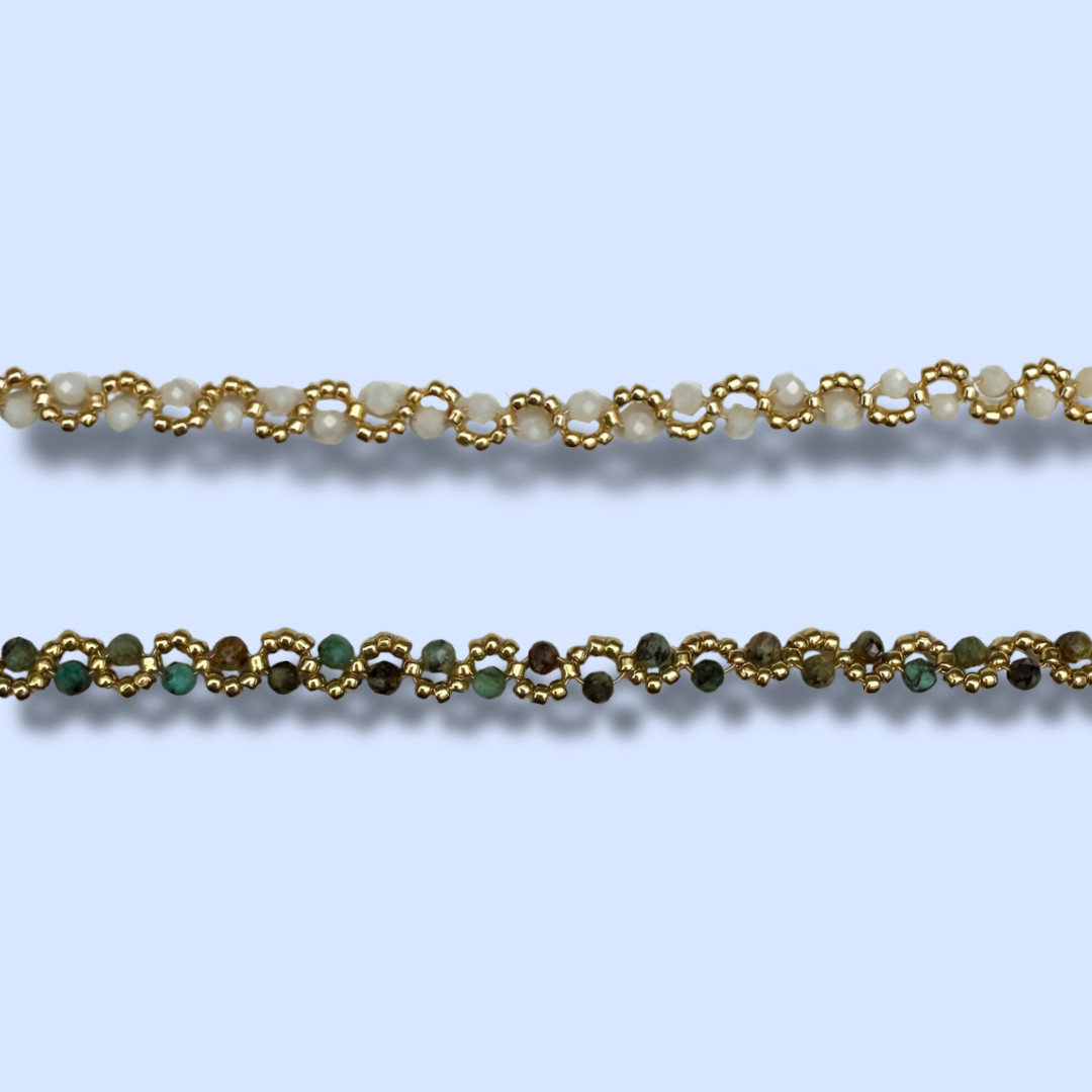 - Bracelet en acier inoxydable orné de pierres naturelles (Agate Blanche et Turquoise Africaine)